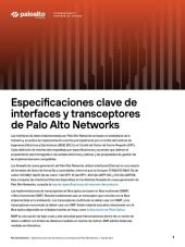 Especificaciones clave de interfaces y transceptores de Palo Alto Networks