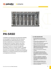 La plataforma de firewall de nueva generación (NGFW) con tecnología de ML PA-5450 de Palo Alto Networks está diseñada para implementaciones de centros de datos a hiperescala, en el perímetro de Internet y de segmentación de campus.